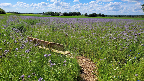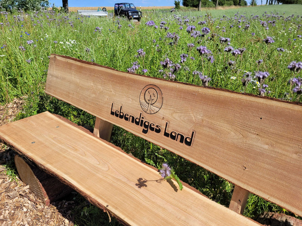 Die Blumenwiese in Ringsberg (Glücksburger Straße) wächst und gedeiht und kann nun langsam bestaunt werden. Aktuell freuen sich die Insekten vorwiegend über das Meer aus Phaceliablüten, nach und nach werden andere Blumen präsenter werden. Die von Freya schön gestaltete Bank steht bereit und wartet darauf, dass Ihr es Euch darauf gemütlich macht, das Surren und Schwirren genießt und – vielleicht ein Foto macht! Denn weil wir nicht rund um die Uhr da sein können, aber uns trotzdem mit Euch darüber freuen wollen, dass Ihr da wart, haben wir uns etwas ausgedacht: wir verlosen unter allen eingesendeten Bildern von der Wiese einen 50 Euro-Gutschein von der Biokiste. Also wer mag schnappt sich das Fahrrad, macht dort Halt, schickt ein Foto von dort an blog@lebendiges-land.de und ist automatisch im Lostopf.