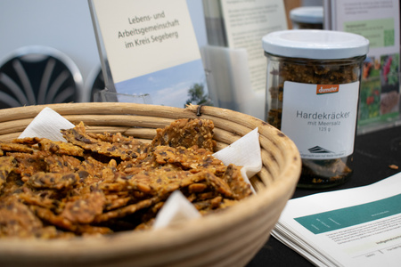 In der sonst als Pfandlager dienenden Messehalle auf dem Firmengelände vom Biogroßhandel Grell in Kaltenkirchen herrscht derweil schon buntes Treiben, wir stürzten uns also ins direkt mit ins Getümmel und in den Strom aus kulinarischen Genüssen.