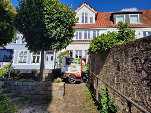 Bereits seit langer Zeit haben wir diesen Tag herbeigesehnt, nun ist er endlich gekommen: das erste Lastenrad vom Lebendigen Land düst nun klimaneutral durch die Flensburger Innenstadt und zieht so manchen Blick auf sich.