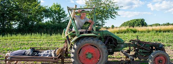 Auf der Tour über Süderschmedeby, Jalm, Sieverstedt, Havetoft und Satrup habe ich an meinem zweiten Tag beim Lebendigen Land meinen neuen Kollegen Ralf begleitet. Ralf war früher Kraftfahrer und hat viele Winkel Europas gesehen. Irgendwann ist er einem Transporter vom Lebendigen Land hinterher gefahren, stand auf dem Hof und fragte, ob man Hilfe bräuchte – die brauchte man und seitdem ist Ralf Fahrer beim Lebendigen Land. Das macht er mit Leidenschaft – das merkt man richtig. Seine Weste und sein Cappy ist mit dem Logo vom Lebendigen Land bestickt. Die hat er im Urlaub in einer Stickerei anfertigen lassen, berichtet er stolz. In dem Körbchen zwischen Fahrer- und Beifahrersitz bemerke ich ein paar Bananen, die ich fälschlicher Weise erst für Proviant hielt „Die sind für den kleinen Elias – das ist der Sohn einer Kundin, der immer die Kiste entgegen nimmt. Ein richtiger Kumpel und der bekommt immer eine Kleinigkeit von mir.“ sagt Ralf. Wir fahren los und ich merke: Mit Ralf ins Gespräch kommen, ist gar nicht schwer. Er erzählt mir stolz von seiner Zeit als Kraftfahrer, dem Leben auf dem Campinglatz in Habernis und seinem Vater, den er früher auch manchmal mit auf Tour genommen hat. Zwischendurch halten wir an, Tür auf, Ralf raus, Schiebetür auf, Kiste raus, alte Kiste rein und weiter. Das geht blitzschnell – so schnell kann man gar nicht gucken. Manchmal treffen wir Kund*innen auf der Auffahrt und es wird kurz und herzlich geklönt. Zu fast jeder Kundin und jedem Kunden erzählt Ralf mir eine kleine Anekdote: „Sie kommt aus England, die mag manchmal ganz gern ein bisschen schnacken – dann lacht sie immer über mein Schulenglisch“ oder „hier war früher eine Kneipe, die hieß 'zum blauen Auge' – rat mal warum.“ Immer wieder wirft Ralf einen Satz wie: "Hier war früher mal ein Kiosk." oder "das war auch mal ein Bahnhof der Schleswiger Kreisbahn" ein. Er kennt Angeln und das nördliche Schleswig-Holstein wie seine Westentasche und ist sehr interessiert an Geschichten von früher – hört zu, fragt nach.