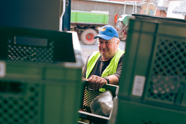 Ralf erzählt mir, dass es viel zu beachten gibt. Einige Kund*Innen wollen das Gemüse in eine spezielle Kiste umgepackt haben damit die Katze nicht dabei geht, andere bitten darum, sich ruhig zu verhalten, damit das Kind weiterschlafen kann. Und bei wieder anderen muss er eine weite Strecke über eine Baustelle zurücklegen um zum Zielort zu kommen. Er ist bei der Beachtung der Lieferwünsche sehr gewissenhaft und legt großen Wert darauf, alles richtig zu machen. Denn nicht nur die sorgfältige Produktion, Sortierung und Verpackung von Lebensmitteln machen das Lebendige Land aus, sondern auch Menschen, wie Ralf, die die Kiste ans Ziel bringen – mit Herz und Hand.