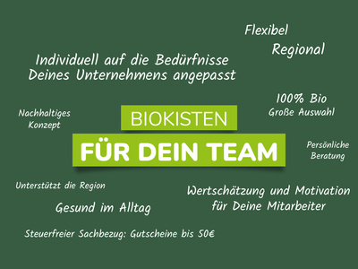Tue Deinen Mitarbeitern und Mitarbeiterinnen etwas Gutes und nutze die Möglichkeit des steuerfreien Sachbezugs in Form eines Gutscheins für die Biokiste. Du stärkst dadurch nicht nur Dein Team und unterstützt gesunde Ernährung auch außerhalb des Unternehmens, sondern leistest zudem einen tollen Beitrag für die Bio-Region hier oben im Norden.