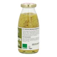 Rapsöl*, Wasser, 12 % SENF* (Wasser, SENFSAAT*, Apfelessig*, Steinsalz), 7% Weißweinessig*, Agavendicksaft*, Steinsalz, Zwiebel*, Knoblauch*, Petersilie*, Schnittlauch*| Energie | Fett | gesättigte Fettsäuren | Kohlenhydrate | Zucker | Eiweiss | Salz |