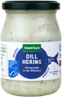 HERINGSHAPPEN ohne Haut 37% (HERING 98%****, Wasser, Rohrzucker , Salz, Säuerungsmittel: Essigsäure), Rapsöl*, Trinkwasser, Rohrzucker*, Zwiebeln*, Branntweinessig*, Apfel getrocknet*, Dill* 0,5%, Sonnenblumenprotein*, Kräuter*, Gewürze*, Meersalz, SENFSAATEN*, Stärke*, Verdickungsmittel: Guarkernmehl*, Johannisbrotkernmehl*| Energie | Fett | gesättigte Fettsäuren | Kohlenhydrate | Zucker | Eiweiss | Salz |