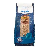 HAFERflocken** 54%, Kakao-Monde* und -Sterne* 14% (WEIZENvollkornmehl*, WEIZENmehl*, Vollrohrzucker*, Kakaopulver*, Honig*, Meersalz, Bourbon Vanille*), Schokodrops* 6% (Kakaomasse*, Rohrzucker*, Kakaobutter*, Vanillepulver*), DINKEL gepufft* 7%, DINKELflakes** 7% (DINKELweizen**, Meersalz*), Cornflakes** 6% (Mais**, Honig*, Meersalz*, Gerstenmalzextrakt**), HAFER Crunchy* 6% [HAFERvollkornflocken* 66%, Reissirup*, Sonnenblumenöl*, Reisextrudat* (Reismehl*,GERSTENmalzmehl*, Meersalz)]Dinkel ist eine Ur-Weizenart.| Energie | Fett | gesättigte Fettsäuren | Kohlenhydrate | Zucker | Ballaststoffe | Eiweiss | Salz |