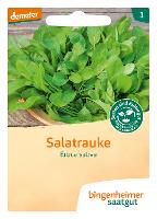 Blätter können laufend gepflückt werden. Salatrauke ist empfindlich gegen Erdflöhe, daher ist eine Netzabdeckung sinnvoll.