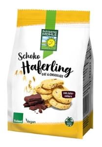HAFER* 56% (HAFERvollkornflocken* geschrotet, HAFERvollkornmehl*), Zartbitterschokolade* 17% (Kakaomasse*, Rohrzucker*, Kakaobutter*, Emulgator: Sonnenblumen-Lecithine*), Rübenzucker*, Sonnenblumenöl*, Backtriebmittel: Natriumhydrogencarbonat, Meersalz.| Energie | Fett | gesättigte Fettsäuren | Kohlenhydrate | Zucker | Ballaststoffe | Eiweiss | Salz |