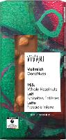 Roh-Rohrzucker*, HASELNÜSSE* (26%), Kakaobutter*, VollMILCHpulver*, Kakaomasse*, SAHNEpulver*, MagerMILCHpulver*, Bourbon Vanilleextrakt*.Kakao: 32% mindestens. Milchbestandteile: 18%.| Energie | Fett | gesättigte Fettsäuren | Kohlenhydrate | Zucker | Eiweiss | Salz |