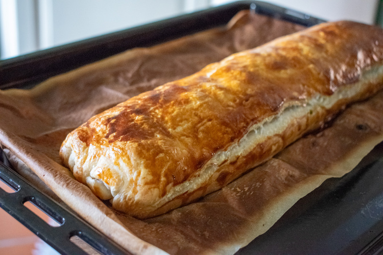 Im vorgeheizten Backofen bei 200°C etwa 30 Minuten backen, bis der Strudel schön braun ist.