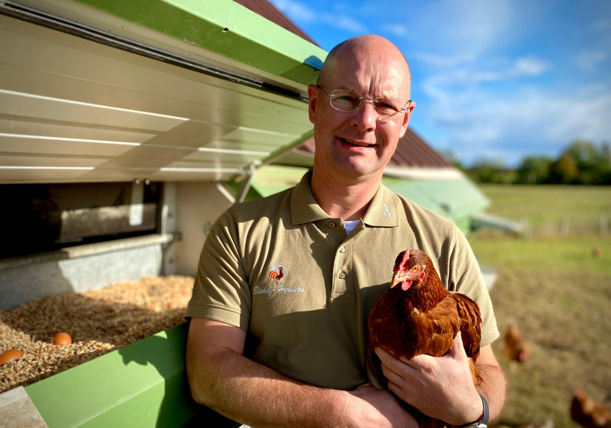 "Wir finden, die biologische Haltung von Hühnern ist die beste Haltung. Jeden Tag können unsere Hühner tun, was sie wollen und haben dabei Zugang zu einem saftigen und grünen Abschnitt unserer Weide"