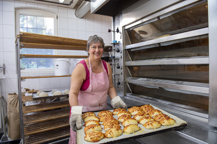 "In der hofeigenen Bäckerei werden ca. 15 Brotsorten gebacken vom reinen Roggenvollkornbrot bis hin zum leckeren Ciabatta.“