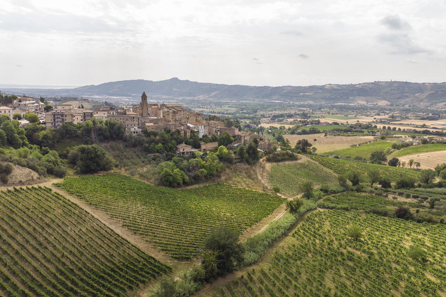 Hier, nur wenige Kilometer im Hinterland der Adriaküste, entstehen authentische Weine. Die Weinfelder liegen auf Kalksteinhügeln und haben karge Böden. Die Sommer sind heiß, dennoch bekommen die Reben eine leichte Meeresbriese ab. So können sie sich nachts von der Hitze erholen. Neben den Weißweinreben Trebbiano, Verdicchio, Pecorino, Passerina, Fiano und Chardonnay wachsen hier auch Rotweinreben der Sorte Montepulciano, Sangiovese und Aglianico.